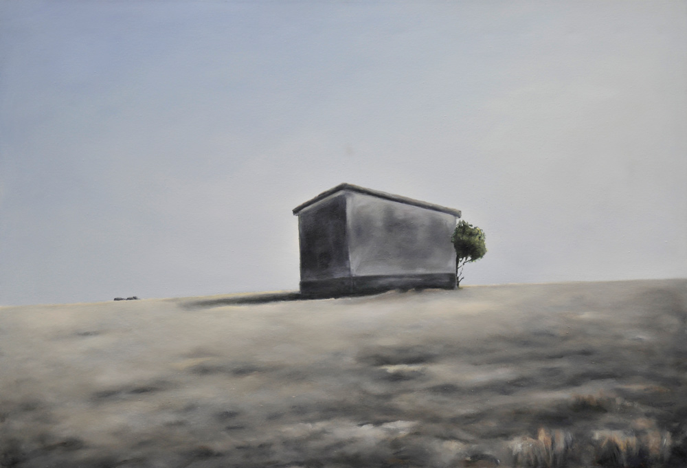 Erinnern wir uns an die eingangs gestellten Fragen: „was“ malt Franz Baumgartner; und warum schweigt es so beharrlich still? Einige vorsichtige Hinweise gibt uns der Künstler: Seinen im Jahre 2004 erschienenen Katalog nennt er „Senza luogo“; dies bedeutet wörtlich übersetzt „ohne Ort“, freier könnte man sagen „nirgends“. Und einer 2008 veröffentlichten Zusammenschau seiner Werke gibt Baumgartner den Titel „Rifugio“, dies heißt „Refugium“ oder „Zuflucht“. – Ist dies nun nicht ein eklatanter Widerspruch? Wie kann man seine Zuflucht nehmen zu einem Ort, der keiner ist, zu einem „Nicht- Ort“? Diesen Zweifel verstärkt der Künstler noch, indem er auf manchen seiner Bilder – zum Beispiel auf dem 2005 entstandenen Werk „Hütte“ – menschliche Artefakte oder auch Behausungen plaziert. Deren Hersteller oder Erbauer sind verschwunden aus dem Bildraum, sind nicht einmal mehr Randerscheinung; und das Haus, die Hütte, spiegeln die Unverletzlichkeit der Behausung, mit anderen Worten ihre Tauglichkeit als Zuflucht, nur vor – trauen würde ihnen niemand, und wer wirklich Schutz braucht, würde sich nur aus purer Verzweiflung oder aus Mangel an Alternative dorthin flüchten. Der „Nicht-Ort“ als Zufluchts-Ort? – hier ist es vonnöten, weiterzudenken. Ein Blick auf die Feinheiten der Sprache mag helfen. Das italienische „rifugio“ verfügt nämlich über durchaus mehrere Bedeutungsebenen, die im Deutschen eher zum Bewußtsein kommen, da dieses zwischen der „Zuflucht“, die ein Ort, und der „Zuflucht“, die ein Tun ist, ein Vorgang, unterscheidet.